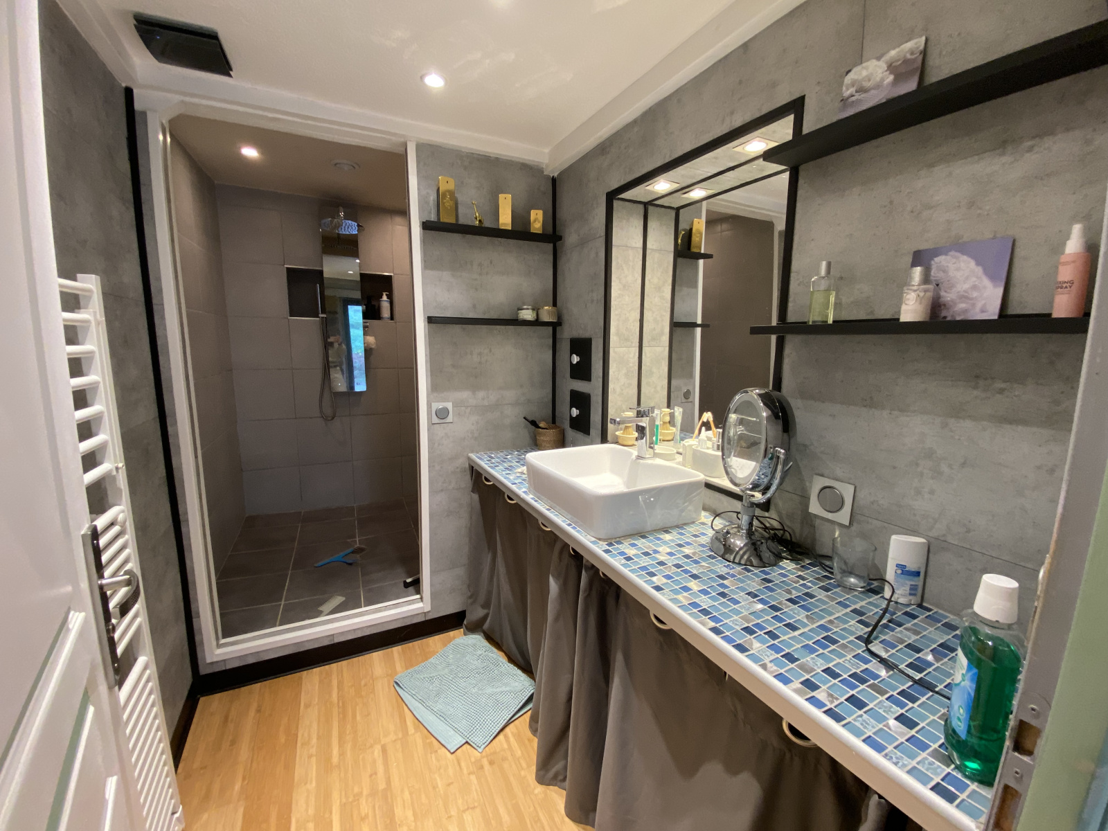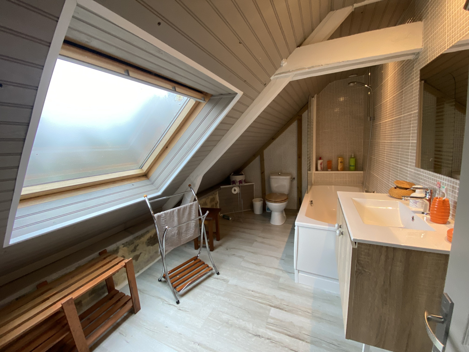 Côté confort, la maison dispose d’une pompe à chaleur et de menuiseries en aluminium double vitrage.